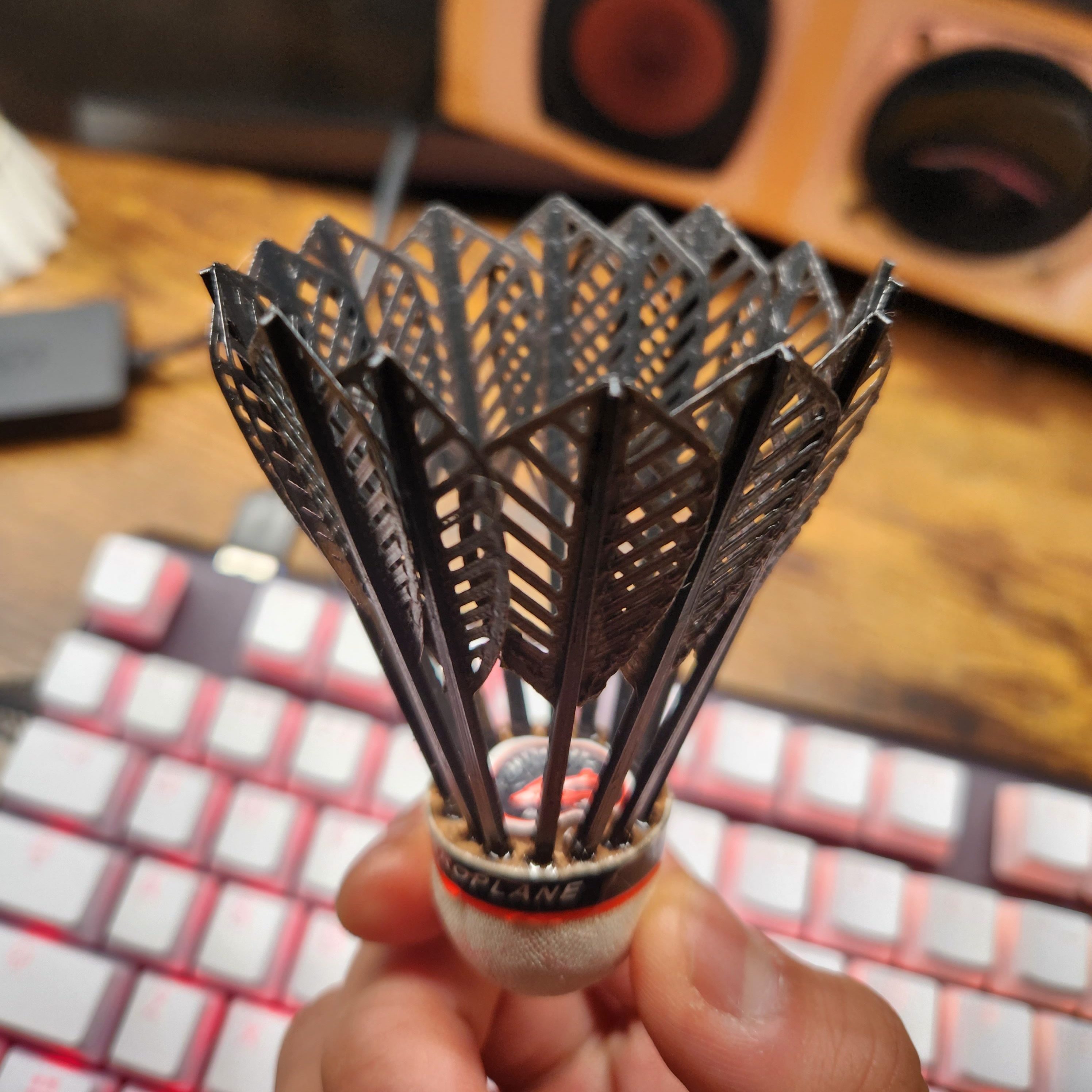 As a badminton enthusiast, I suffered slightly from the financial burden of the cost of feather birdie (30$ for 12 birds). I have a 3d printer and I decided to create a 3d model of printed feathers. Ran it through some aerodynamics analysis and found out it is a little too heavy in real life. This will be continued when I acquire pre-foamed pla.